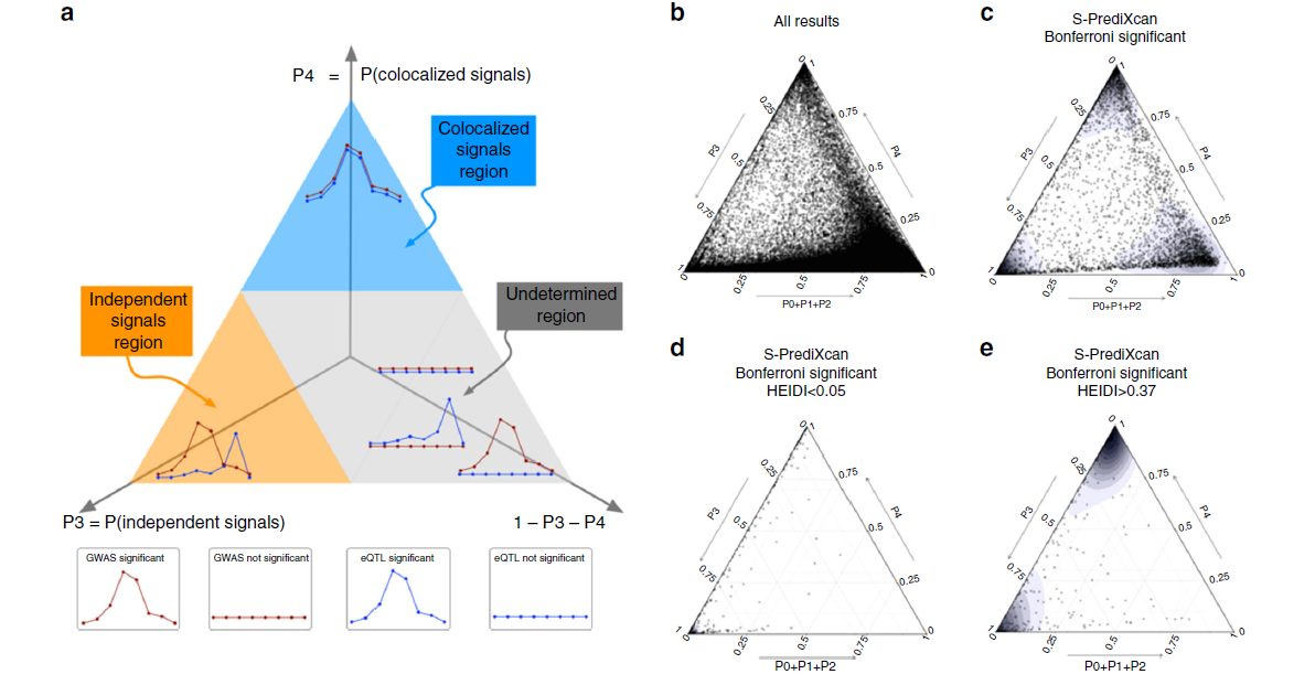 - $H_4:$ SNP signal associate with both eQTL and GWAS, and shared signal (colocalized).