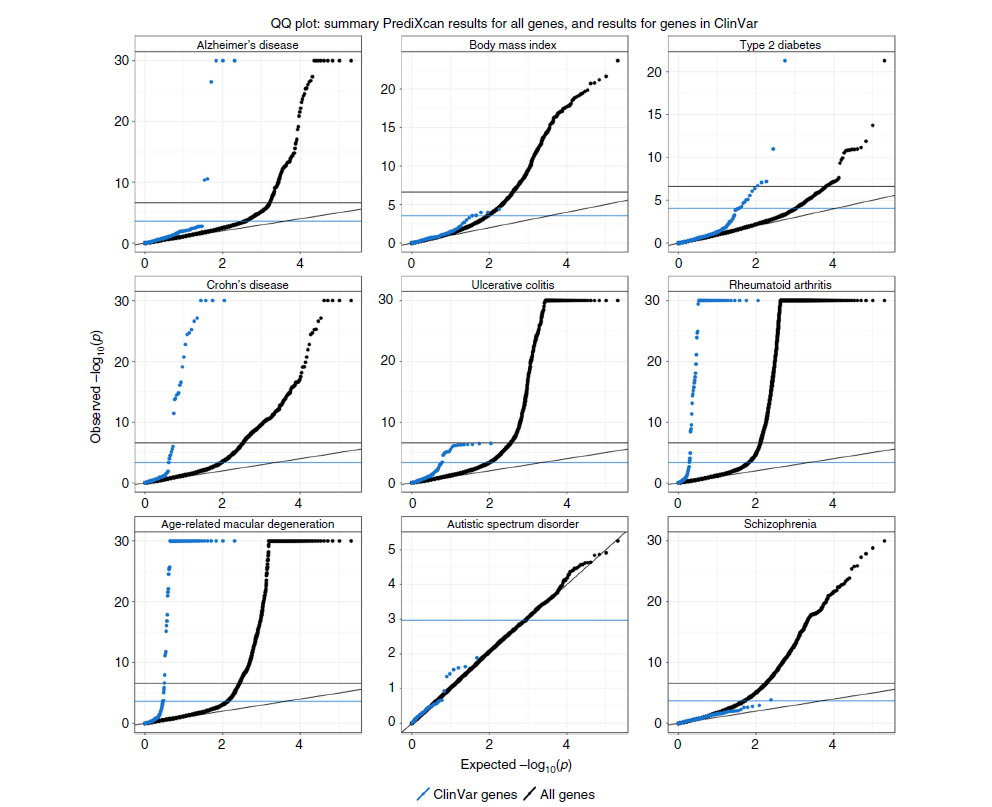 PrediXcan is a computational algorithm developed to exploit GTEx data, including eQTLs identification and their relationship to complex traits. PrediXcan evaluates the aggregate effects of cis-regulatory variants (within in 1MB upstream or downstream of genes of interest) on gene expression via an elastic net regression method, and consequently, PrediXcan may identify loci with modest to weak effect sizes that do not achieve significance in variant-based association studies.