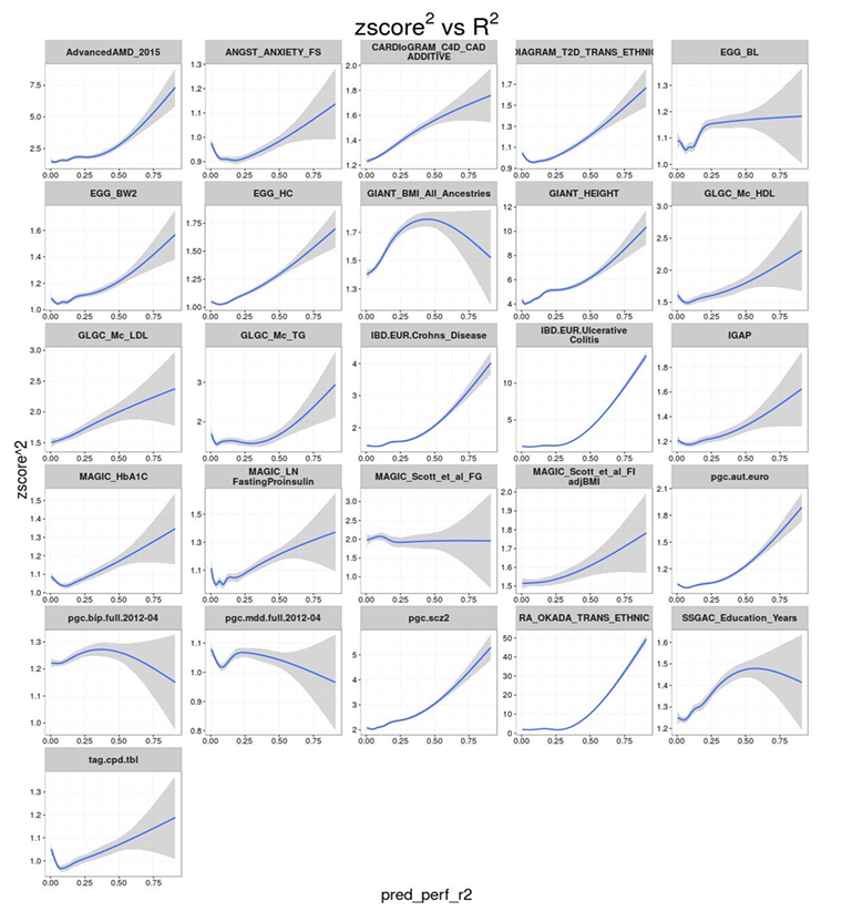 Z-score increase when predicted performance is better.It shows the prediction is more reliable if predicted performance is better. It means that S-PrediXcan associations tend to be more significant when prediction is more reliable.